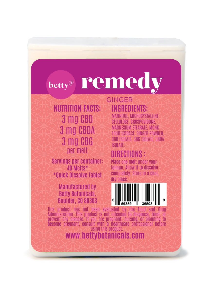 For tummy turmoil or period blues, Remedy comes to the rescue. Blending soothing ginger flavor with the balancing effects of CBD, CBDA and CBG, Remedy Melts are our go-to to promote healthy digestion and overall abdominal comfort.